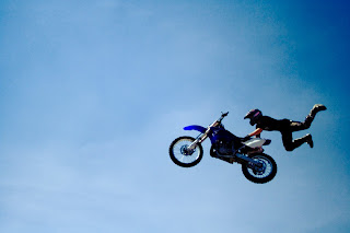 (The image is not of Mr P on the A702-but, allegedly, of a visiting biker who had failed to notice an unexpected speed bump on the Fishwick Bypass-designed for speeding tractors, apparently)